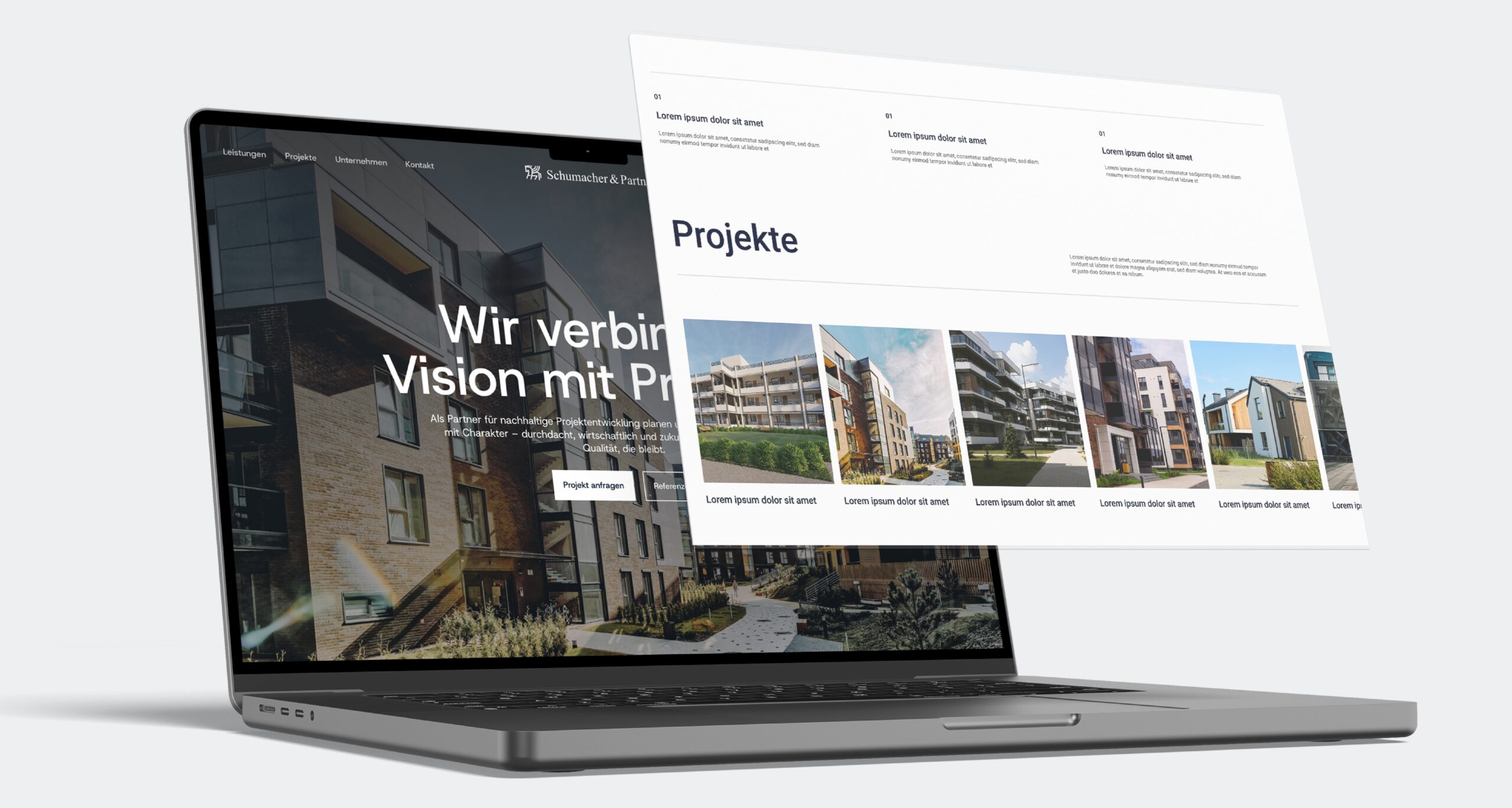 Schumacher & Partner ist ein Generalübernehmer und Bauträger, für den wir ein komplettes Rebranding umgesetzt haben. Dazu gehörten die Entwicklung eines neuen Logos, einer modernen Website und einer konsistenten visuellen Identität. Ziel war ein klarer, professioneller Auftritt, der Kompetenz, Verlässlichkeit und Qualität vermittelt. Das Ergebnis: eine starke Marke, die sich deutlich von Wettbewerbern abhebt und Schumacher & Partner als modernen Baupartner positioniert.
